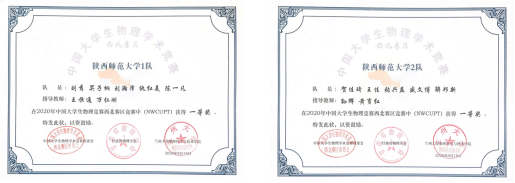 近日,2020年第十一届中国大学生物理学术竞赛(简称CUPT)西北赛区比赛由兰州大学承办,以线上竞赛的形式成功落下帷幕。本次大赛西安交通大学,兰州大学,西北工业大学,西安电子科技大学等20所高校48支代表队参赛,我校两支代表队均获得西北赛区一等奖。