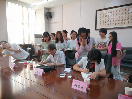最后,名师们为学生代表赠送了书籍《量子力学》和《物理学史》,郑海荣老师在自己主编的《量子力学》上为同学们签上了寄语。王成会副院长代表学院对到会的名师专家予以感谢,同时要求同学们认真领会名师教诲,在未来卓越教师成长道路上努力前行!
