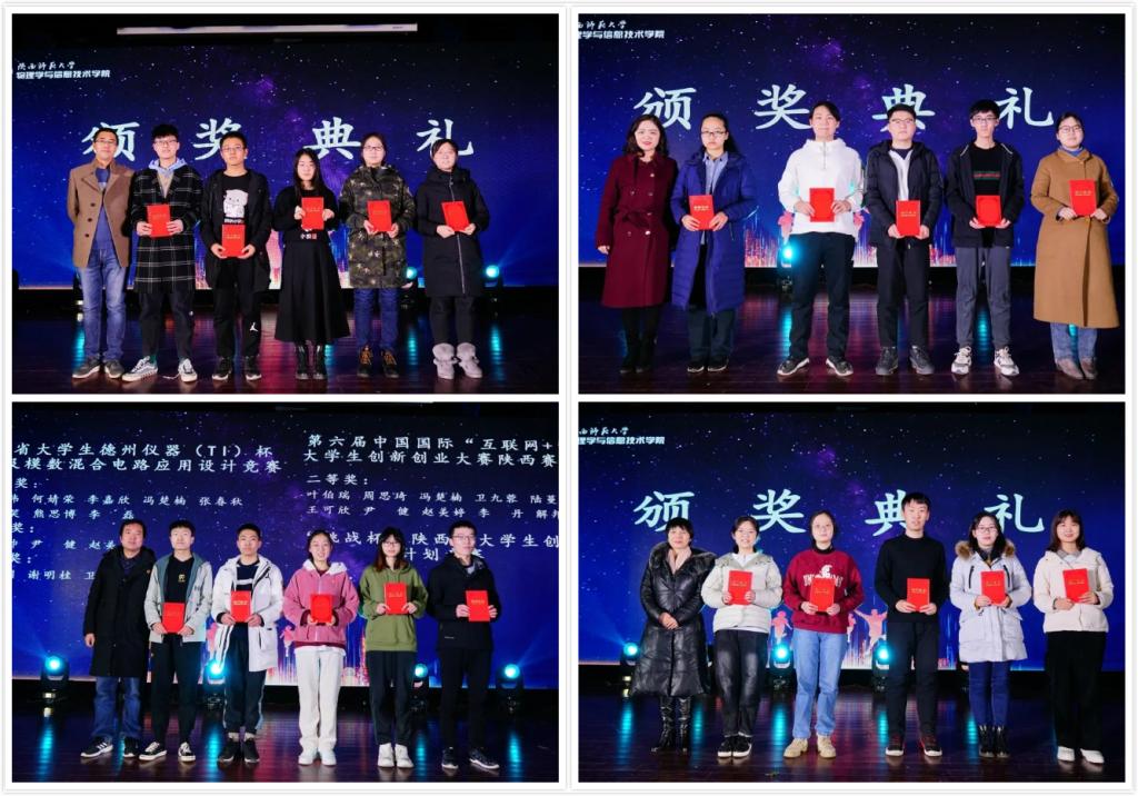 随着所有人一起倒计时,知了乐队火爆开场,在欢快的开场音乐节奏后,举行了颁奖典礼,对在2020年全国10个大型比赛中学院学子取得的佳绩进行表彰,以及获得2020年国家奖学金的学院研究生和本科生进行表彰,展示了了学院学子一年来取得的可喜成绩,由学院领导郭伟、陈晓明和王成会为这些同学进行颁发荣誉证书,并勉励学院学生不忘初心,砥砺前行,奋力谱写学院发展的新篇章。