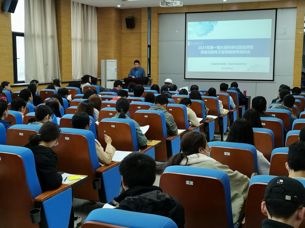 学院大型仪器共享平台建设基本完成,并投入使用。为进一步加大宣传,更好地服务于学校教学和科研工作,结合学校实验室建设与管理处分期举办的大型科研仪器宣讲培训会,我院于2021年4月1日上午在学院六层报告厅举办了大型仪器共享物理分平台宣讲及使用培训会。培训会由实验室建设与管理处副处长李召虎主持,来自学校物理、化学、材料、生物、地理、食品等学院约130名师生参加了培训会。