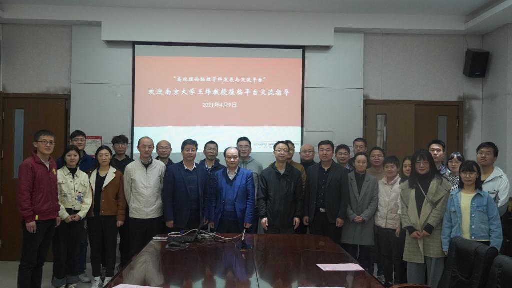 2021年4月9日,南京大学的王炜教授来我校“理论物理学科发展与交流平台”进行学术交流和考察,平台学术报告和交流座谈会在致知楼3328会议室举行。学校党委常委、物理学院院长李贵安、科研副院长张林、行政副院长郭伟、平台历年项目负责人和平台教师代表参加了本次交流会。会议由张林副院长主持。