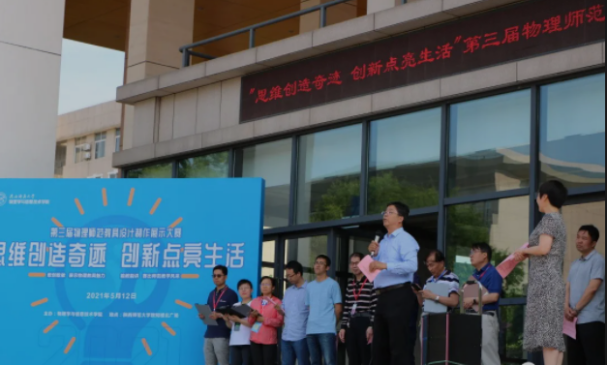2021年5月12日下午,公海5500线路检测“思维创造奇迹,创新点亮生活”第三届物理师范教具设计制作展示大赛于长安校区致知楼北门外广场成功举办。莅临本次大赛现场的有学校党委常委、物理学院院长李贵安,物理学院党委书记辛向仁,副书记曹宇巍,副院长王成会、张林、陈晓明、郭伟,学科教学论教研室所有教师,担任本次大赛评委的王较过教授、王晅教授、张红洋教授、黄育红副教授、卢江波副教授、王璐教师,以及指导教师代表和参赛学生。本次大赛开幕式由王成会副院长主持。