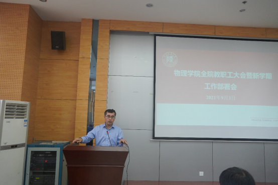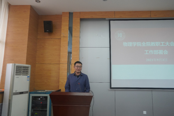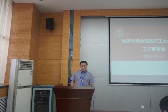 科研副院长朱刚强详细分析了学院目前科研工作和学科建设的现状,安排下半年科研及学科建设重点工作:陕西省重点实验室评估整合工作、第五轮学科评估意见反馈回复工作、陕西省工程技术中心的申报工作、组织凝聚态物理和光学学科联合申请省重点实验室,物理学博士点、电子与通信工程硕士点评估工作。
