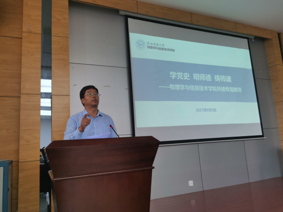 最后,李贵安院长为全院教职工作师德专题教育报告,解读新时代高校教师职业行为十项准则,强调师德师风建设,希望全院的教职工凝心聚力,群策群力,以自己实际的行动为学院高质量发展做出更大的贡献。