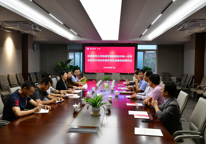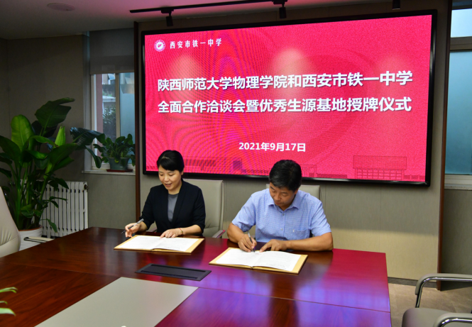 9月17日下午,学院与西安市铁一中共同举办全面合作洽谈会暨优秀生源基地授牌仪式。学校党委常委、公海5500线路检测院长李贵安与西安市铁一中校长庆群共同签署全面合作协议。公海贵宾会5500iii教务处副处长、本科招生办公室主任秦文静代表学校向西安市铁一中授予“公海贵宾会5500iii优秀生源基地”牌匾。双方就进一步开展基础教育教学改革深入交换了意见。会后,公海5500线路检测党委书记辛向仁代表学院向西安市铁一中学生赠送书籍《与中学生谈经典》,与会人员集体观摩了铁一中学的课堂教学,参观了铁一中校史馆。我校校友、西安市铁一中物理教师马壁富、黄世玉、李虎洲、张璋、尚文佳等老师也参加了此次合作洽谈会。