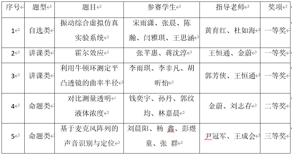 在刚刚结束的第八届全国大学生物理实验竞赛(创新)中,我院组建的5支代表队,与全国500余所高校的2053支队伍同台竞技,最终荣获国家一等奖3项、二等奖1项、三等奖1项。获奖类型达到了讲课类、自选类、命题类赛道全覆盖,整体获奖质量与数目取得历史新高,实现新的突破,在全国高校名列前茅。