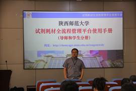 化学化工学院严军林主任对试剂耗材平台系统的使用进行培训,培训内容涉及国家管理规范法律法规、危险化学品目录、平台账号的注册使用、公安处备案流程、化学药品校内平台领用、管制类药品采购申报、自购化学药品盘库入库、废液桶管理、低值高值耗材入库报销等方面。培训范围涉及学生用户端使用和教师管理员使用。各二级学院单位对平台的使用做了详实地咨询,对现行系统提出了宝贵的改进意见。