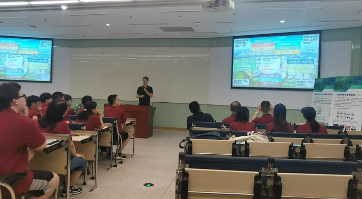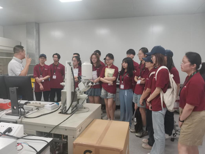此次游学活动的第一站,是位于上海市浦东新区张江高科技园区的国家“双一流”建设高校上海科技大学。7月19日上午,上海科技大学物质科学与技术学院的徐旭光副院长为研学师生介绍了上海科技大学及物质学院的建设历程以及目前的教学和科研体制。讲座结束后,物质学院的江玉海、刘小井等十几位教授及部分研究生分别为我校师生介绍了各科研团队的研究方向与近期学术进展,学生们针对物质大厅内的学术海报与教授们进行了深入交流和学习。7月19日傍晚,师生参观了上海科技大学物质学院的拓扑物理实验室、微纳加工实验室、电镜中心等。通过参观,学生们看到了精密仪器在各种极端条件下的运作,了解了科学前沿研究的先进实验平台及精密的大型装置,感受到了物理实验的魅力,也更加坚定了继续从事物理科学研究的决心。