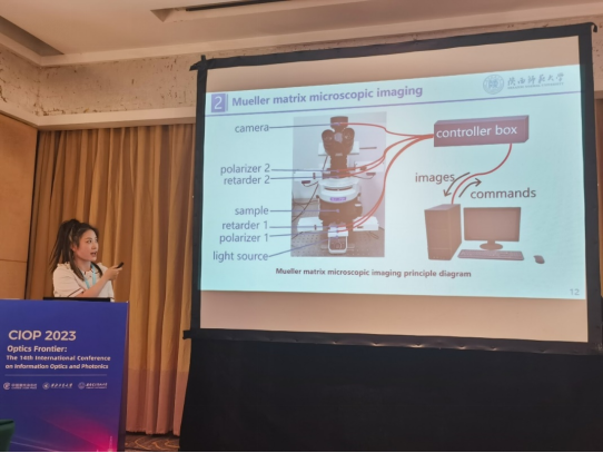 我院任立勇教授做了题目为“Full-Stokes-vector division-of-aperture polarimetric camera and its applications”的邀请报告;张正龙教授做了题目为“Luminescence of rare earth doped nanoparticle in plasmonic nanocavity”的邀请报告;魏寒月(博士研究生)、周逸夫(硕士研究生)、麻宇航(硕士研究生)和向睿(硕士研究生)分别做了题目为“Detection of cervical cancer using Mueller matrix microscopy imaging based on tissue microarray”、“A polarimetric dehazing algorithm based on Multiple Exposure Fusion”、“Resign and research of waveplate-rotating polarimeter based on Fourier series”和“Study on application of laser technology in restoration of lead white darkening in cultural relics”的口头报告。