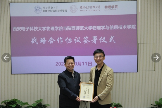 为落实国家基础科学研究重大战略,充分发挥各自在教育教学、科学研究、设备设施等方面的优势特色,提升双方学科建设水平和人才培养质量,我院与西安电子科技大学物理学院本着“优势互补、合作共赢”的宗旨,决定在人才培养和科学研究等工作领域开展全面战略合作。