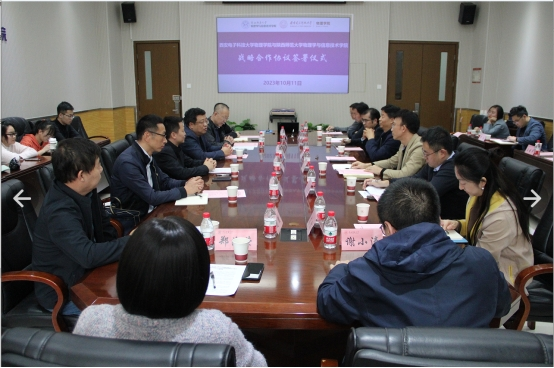 2023年10月11日下午,我院与西安电子科技大学物理学院战略合作协议签署仪式在公海贵宾会5500iii长安校区致知楼三层会议室举行。西安电子科技大学物理学院院长、我院1986级杰出校友郭立新、学院党委书记黄军荣及学院全体班子成员,我校党委常委、院长李贵安,学院党委书记王启明、班子成员、各学科负责人及师生代表30余人参加签约仪式。签约仪式由我院党委书记王启明主持。
