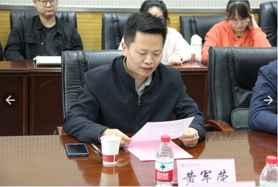 黄军荣书记宣读《西安电子科技大学物理学院与公海5500线路检测战略合作协议》,根据双方商定,我院与西电物理学院将在教育教学、科学研究、学术交流、项目奖项联合申报、平台建设、研究生推免和联合培养、高水平师资队伍建设等多方面开展深度合作。