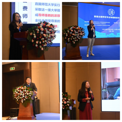 来自全国高校、中学的师生代表围绕课程思政融入师范和中小学教育的研究和实践、师范生培养与成长的思考与探索、大学物理及其在师范教学中的作用与思考、师范专业物理教育与教学工作的研究与实践等主题进行了充分的交流和研讨,对推动全国物理师范教育协同提质,深化物理师范生培养工作起到了积极作用。
