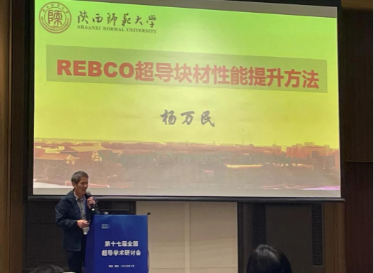 我院杨万民教授做了主题为“REBCO超导块材性能提升方法”的邀请报告,他从制备单畴及织构REBCO超导晶体的RE+011 TSIG方法、引入非超导第二相纳米磁通钉扎中心的熵增理论及制备方法、提高多籽晶超导晶体的籽晶空间构型设计方法等方面,介绍了他们课题组新近发明的部分科技成果。另外,杨万民教授今年8月底9月初在法国举行13th international Workshop on Processing and Applications of Superconducting Bulk Materials会议上,做了主题为“A new kind of High-entropy Gd2Ba2Sr2CuZrOy nanoscale flux pinning centers to fabricate high quality GdBCO bulk superconductors”的邀请报告。杨万民教授等发明的这些方法和技术,不仅降低了制备单畴REBCO超导块材的成本,而且显著提高了REBCO超导晶体的生长速率和超导性能,他们制备的直径93 mm单畴YBCO超导块材是目前国内用单籽晶单组份制备的最大样品;制备REBCO超导块材的磁悬浮力已达19.8 N/cm2(77K,0.5T);直径32mm厚8.4mm的单畴SmBCO超导块材的捕获磁通密度达1.15 T(77K)、直径20 mm单畴GdBCO超导块材的捕获磁通密度达1.12 T(77K)直径32mm的单畴YBCO超导块材的捕获磁通密度达到1.55 T(77K)。这些方法、技术和性能居于国际先进、部分国际领先水平。