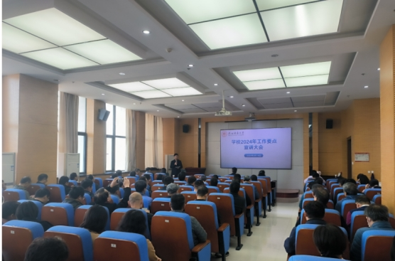 2023年是全校上下团结奋进、苦干实干的一年。杨校长围绕“深入开展主题教育、扎实推进巡视整改、认真落实“两条主线、一个根本、一个关键”发展思路”三个方面,带领大家一起回顾了2023年学校建设发展的基本情况,过去的一年学校实现了关键指标稳增长、重点领域提质效、改革创新强动能、狠抓落实转作风、防范风险保安全的发展目标,学校事业呈现持续向好的发展态势。同时,杨校长特别指出,2023年学院在学科建设、标志性成果产出、高层次人才培育、对外办学合作等方面所取得的显著成绩,为学院持续发力高质量发展加油鼓劲、树立信心。