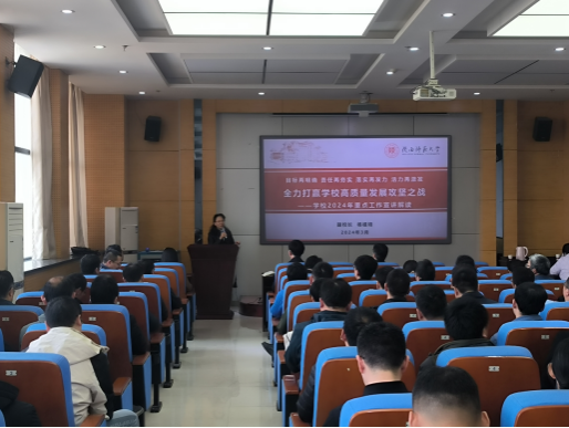 为进一步统一思想、明确目标、夯实责任,有针对性地提升全院教职工落实学校2024年重点工作的思想认识和成果成效。3月14日下午,我院在致知楼三段6层学术报告厅召开新学期全院教职工大会,学校副校长杨祖培、学院领导班子以及全体教职员工参加了会议。会议由学院党委书记王启明主持。