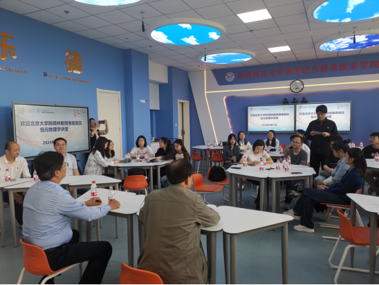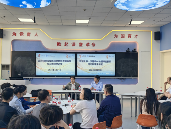 报告结束后,陈晓林教授与我院中青年教师及21级卓越班同学在我院思乐德(SLD)智慧教室进行了座谈交流,就大学的物理学相关课程讲授、如何成为中学物理竞赛指导教师和物理竞赛人才的选拔等方面展开了热烈、深入的讨论。在讨论会总结中,李贵安院长对陈晓林教授的到来表示了衷心的感谢,陈教授在物理学科人才选拔和国际奥林匹克物理竞赛方面的经验的对我院本科人才培养具有重要的指导意义,为学生后续发展指明了方向。