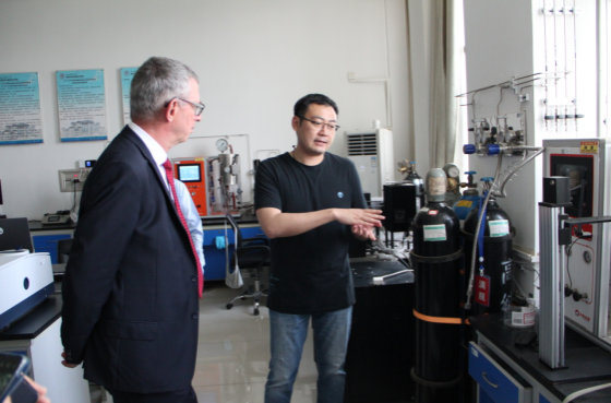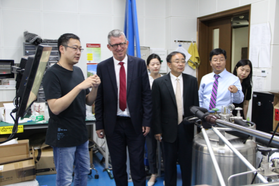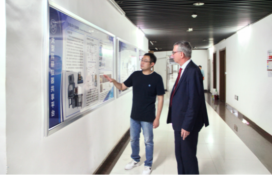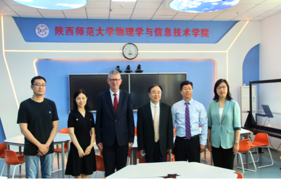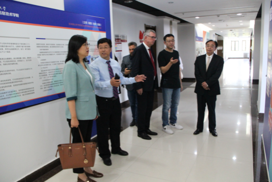 李贵安院长对访华团到来表示热烈欢迎,向外宾介绍了学院的人才培养、学科发展和学院设立的国际暑期学校项目。高健智副院长详细介绍了学院电子信息科学与技术专业师资队伍情况、对外合作办学筹备等情况,同时带领访华团参观了学院的量子物质调控实验室、国家级x-物理实验教学示范中心、智慧教室等办学设施,并对学院的文化墙建设进行了介绍。