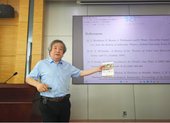 6月15日下午,北京市高等学校教学名师、北京大学物理学院田光善教授受邀做客我院“八秩芳华·恒元物理学讲堂”,在学院六层报告厅为我院师生做了题为“凝聚态物理学的发展简史”的专题报告。校党委常委、学院院长李贵安教授及凝聚态专业多位教授、我院2021级卓越教师实验班全体同学、部分本科生与研究生参加了报告会。报告会由院长李贵安教授主持。