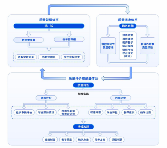 强化标准领航,重视过程管理。学院紧抓“质量标准”“质量管理”和“质量反馈”三要素,形成涵盖课程建设、教学实施、过程管理等关键环节的本科教学制度管理体系。确立由教学团队、教学委员会和教学督导组参与的“评价-反馈-改进”闭环质量改进督导团队,为全面提升本科人才培养质量提供坚强保障。深入实施“党建+课改”工作模式,以党建为引领,深度挖掘课程和教学方式中蕴含的思想政治教育资源,努力实现全员全程全方位育人。学院专业建设成效突出,2023年5月物理学师范专业完成了教育部师范专业三级认证专家进校考察。
