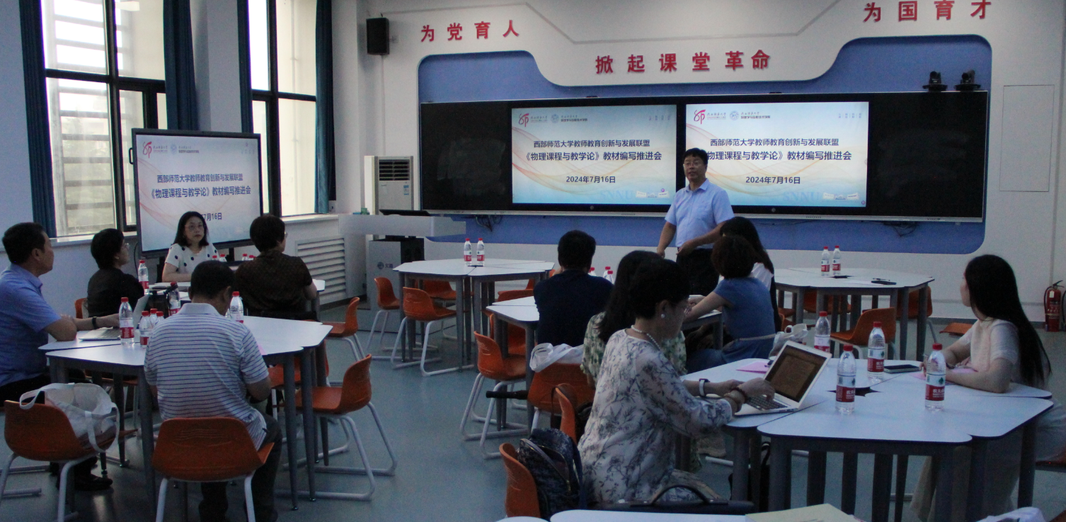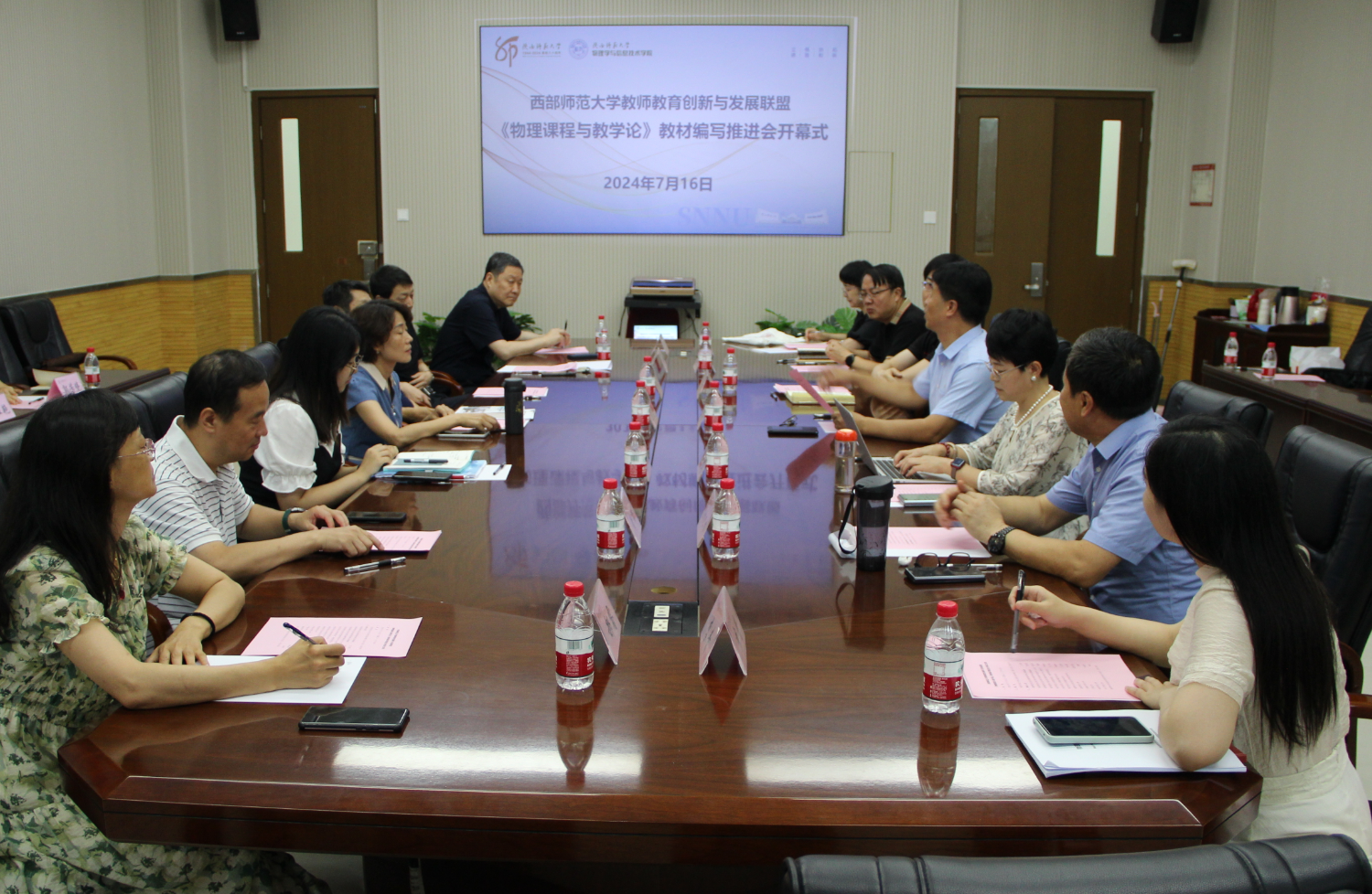 7月16日,西部师范大学教师教育创新与发展联盟《物理课程与教学论》教材编写推进会在我院顺利召开。学院院长李贵安、学院书记王启明出席会议。王启明书记主持会议,热情欢迎各位领导和与会专家,并对后期工作作了展望。