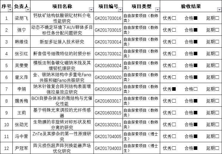 按照科技处相关要求,学院于组织了2018年中央高校基本科研业务费项目(自由探索项目)的结题验收工作。现将相关结果公布如下: