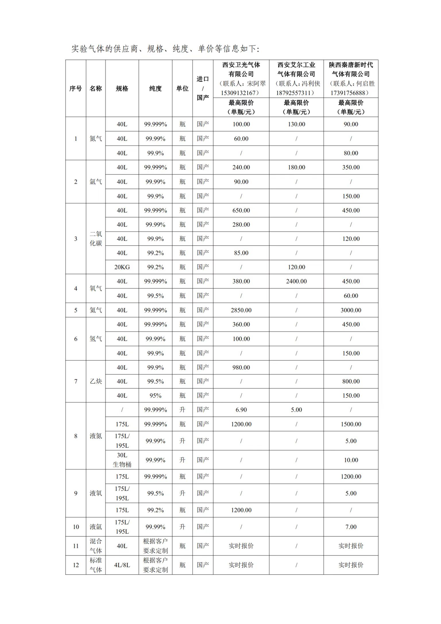 为进一步规范学校实验用气体供应商管理,促进学校实验室气瓶安全管理,减少安全隐患,实验室建设与管理处公开招标了3家压缩气体供应商,主要供应高纯氮气、氩气、氧气、二氧化碳等常用气体(http://www.snnu.edu.cn/info/1015/30014.htm)。根据协议,三家气体供应商免费提供用于气体充装的正规气瓶,并负责气瓶的定期检验、配件的妥善维护及后续报废处理。校内各单位无需采购气瓶,各实验室也不可自行采购或接受以任何形式附赠的气瓶。
