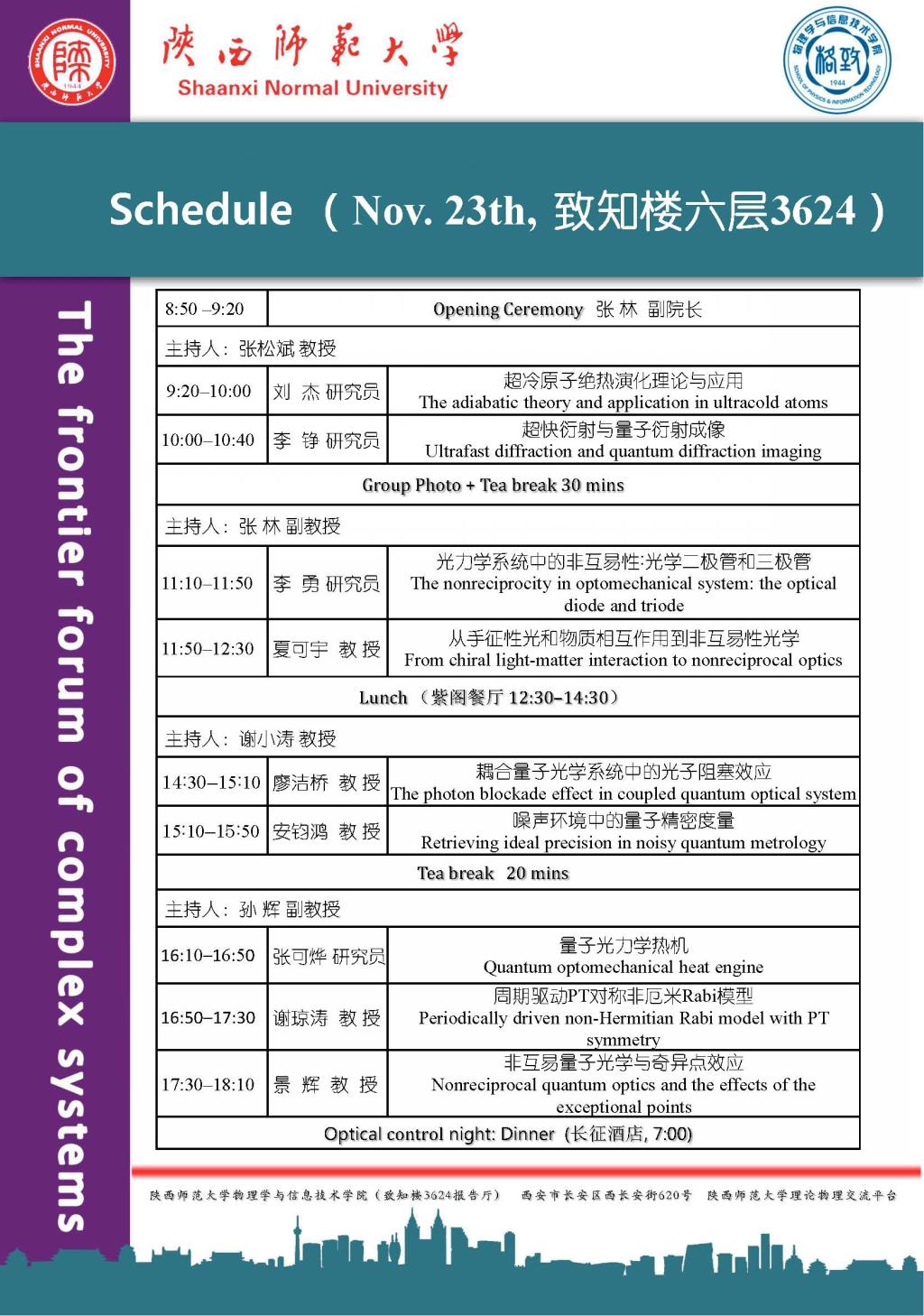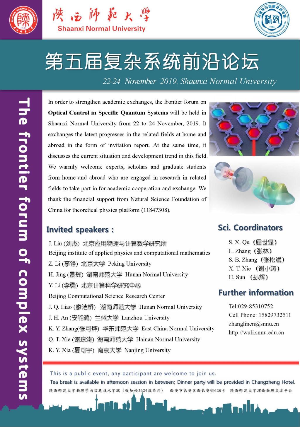 随着量子和微加工技术向纳米领域的深入,量子控制日益成为重要的研究课题。通过光学手段控制量子复杂系统动力学过程的研究表现出了更为广阔的发展前景。为加强国内外尤其是中西部地区该研究领域相关的学者之间的学术交流,在国家基金委理论物理平台专项基金支持下,光量子调控(Optical control in specific quantum systems)专题会议将于2019年11月22日至24日在公海贵宾会5500iii长安校区(陕西省西安市)举行。会议由公海贵宾会5500iii主办,会议主要以邀请报告的形式,交流和讨论在冷原子系统、光力学系统等特殊光学微系统领域光量子调控的最新进展、研究现状与发展趋势。热烈欢迎国内外从事相关领域研究的专家学者及研究生踊跃参加,合作交流!