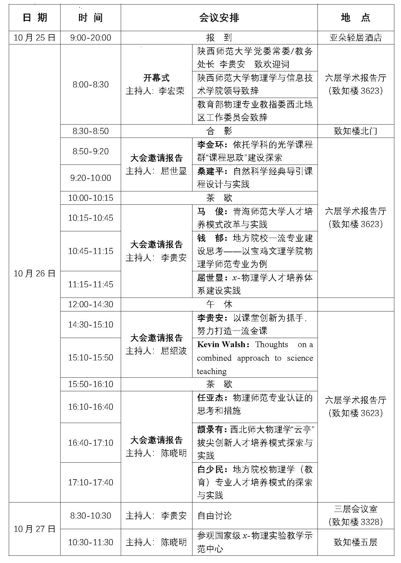 为促进西北地区师范类高等院校物理类专业发展,深化教育教学改革,提升人才培养质量,教育部物理专业教指委西北地区工作委员会决定召开西北地区师范院校物理类专业教育教学改革研讨会,会议定于2019年10月25日-27日在公海贵宾会5500iii举行。会议将就师范类学校的物理类学科及专业发展、教育教学改革、拔尖创新人才培养等内容进行专题研讨。我们将邀请教育部物理专业教指委委员、国内外知名专家,本区域的师范类高校相关院(系)领导及教师参会,现将会议有关事宜通知如下:
