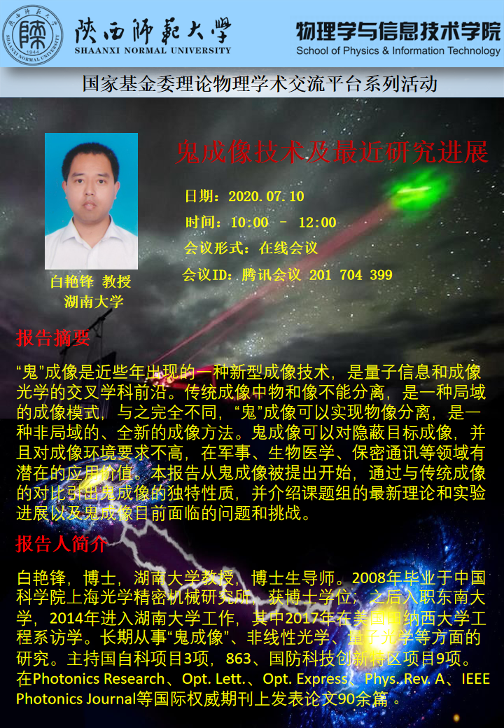 国家基金委理论物理学术交流平台系列活动:鬼成像技术及最近研究进展