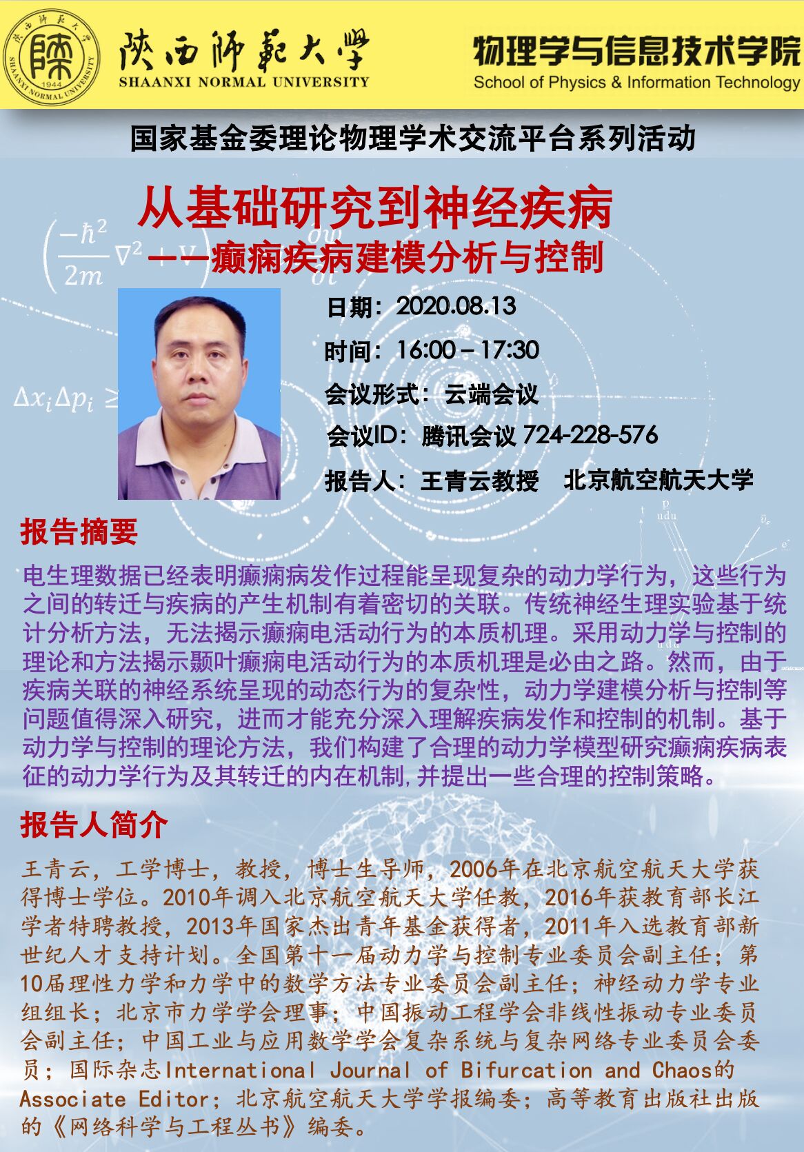 国家基金委理论物理学术交流平台系列活动:从基础研究到神经疾病-癫痫疾病建模分析与控制