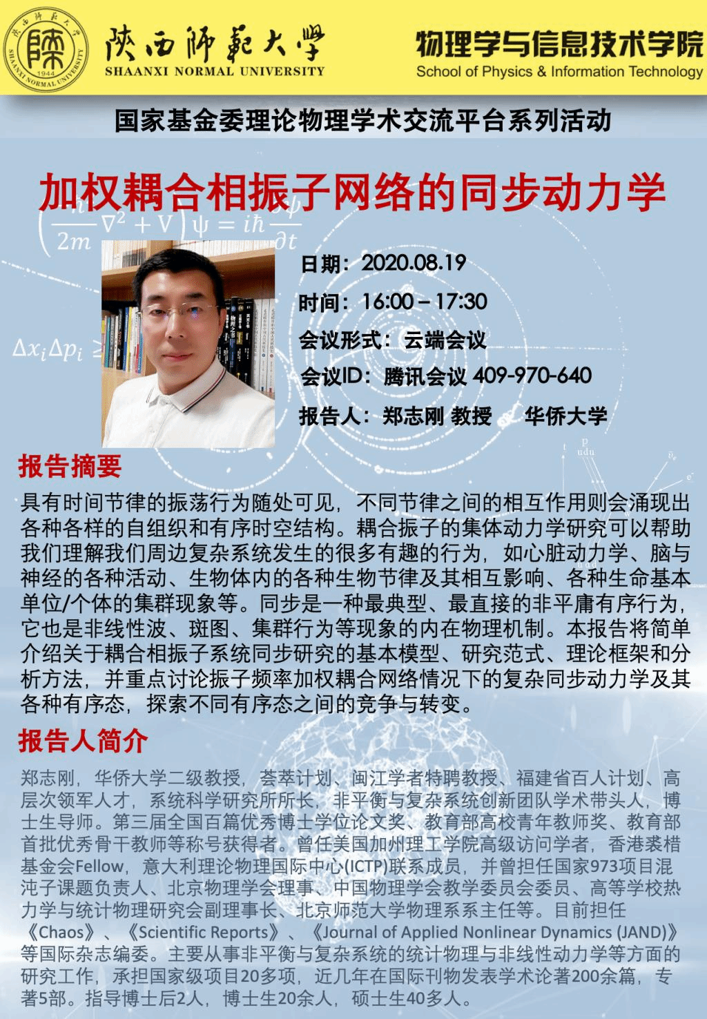国家基金委理论物理学术交流平台系列活动:加权耦合相振子网络的同步动力学