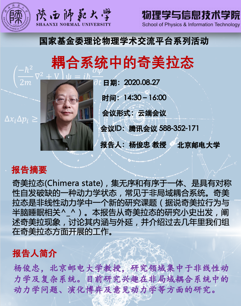 国家基金委理论物理学术交流平台系列活动:耦合系统中的奇美拉态