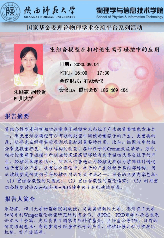 国家基金委理论物理学术交流平台系列活动:重组合模型在相对论重离子碰撞中的应用