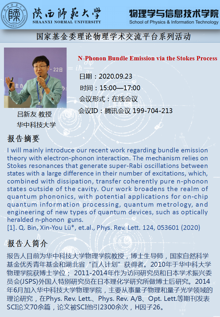 国家基金委理论物理学术交流平台系列活动:N-Phonon Bundle Emission via the Stokes Process