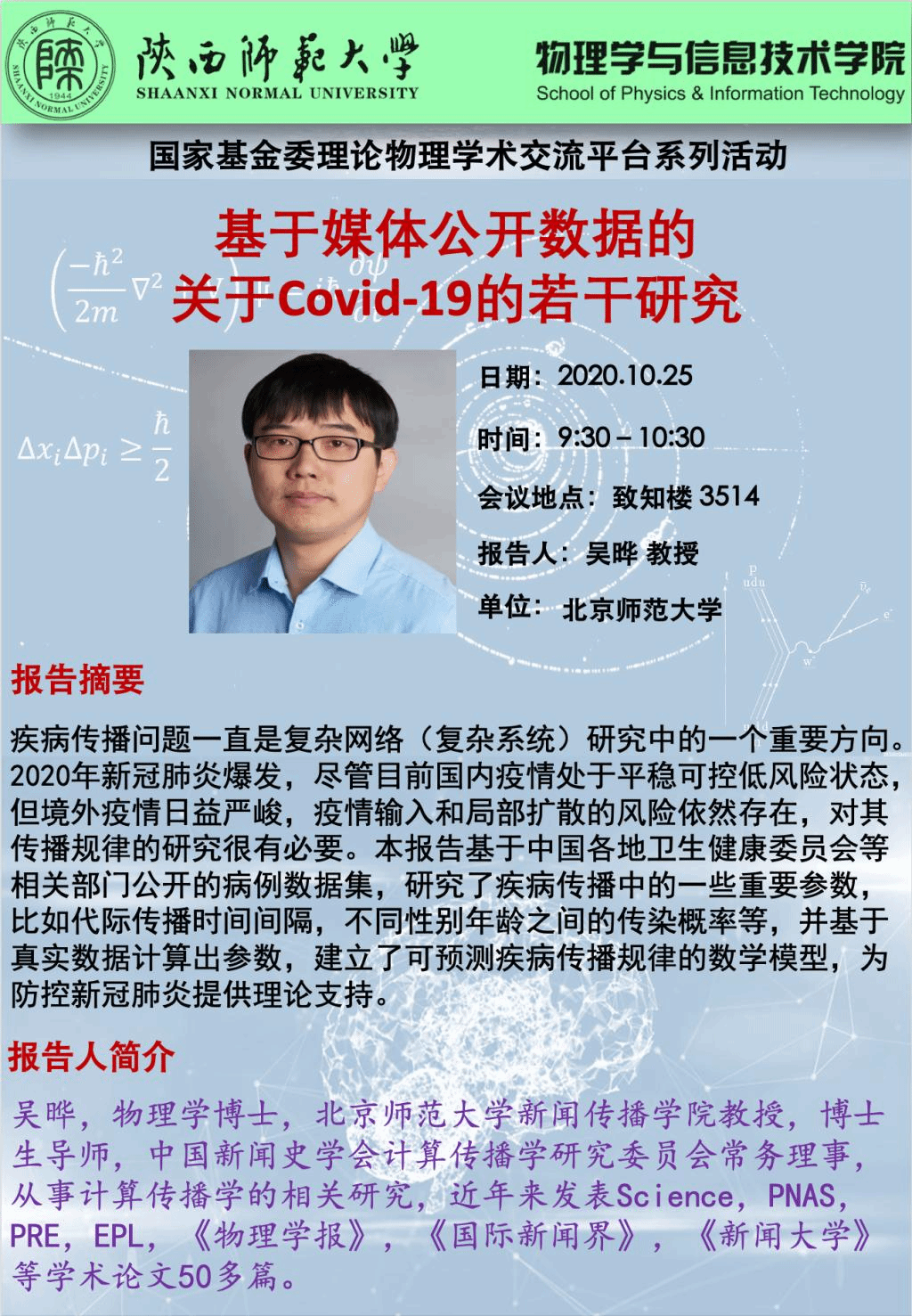 国家基金委理论物理学术交流平台系列活动:基于媒体公开数据的关于Covid-19的若干研究