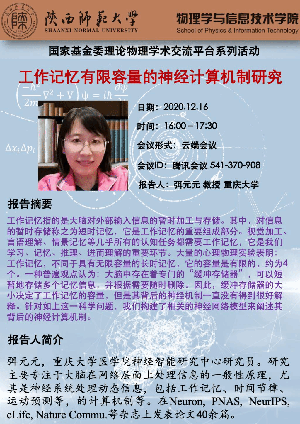 国家基金委理论物理学术交流平台系列活动:工作记忆有限容量的神经计算机制研究