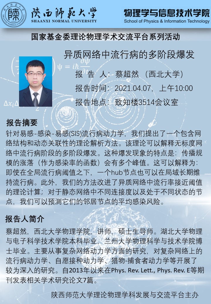 国家基金委理论物理学术交流平台系列活动:异质网络中流行病的多阶段爆发