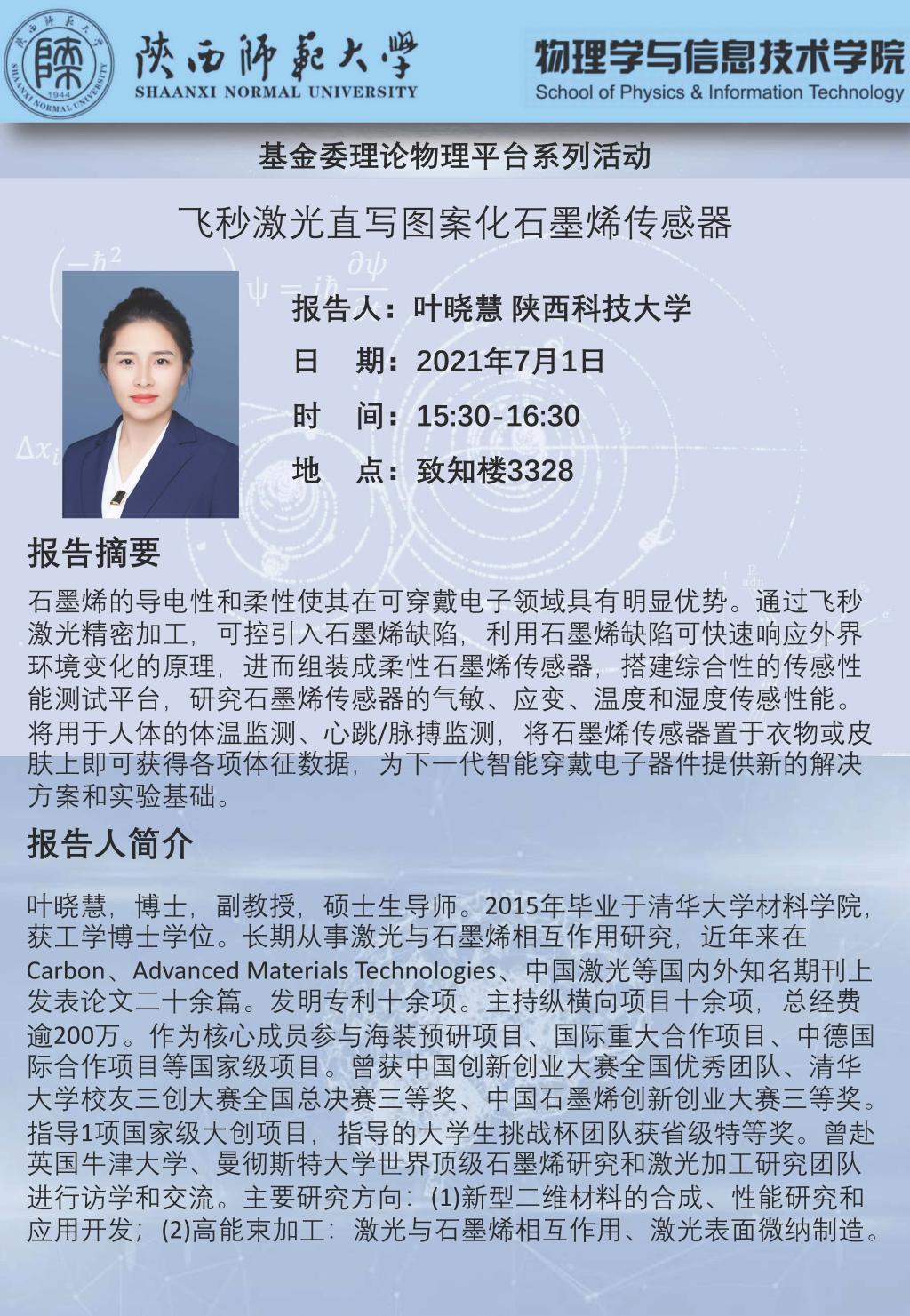 基金委理论物理平台系列活动:飞秒激光直写图案化石墨烯传感器