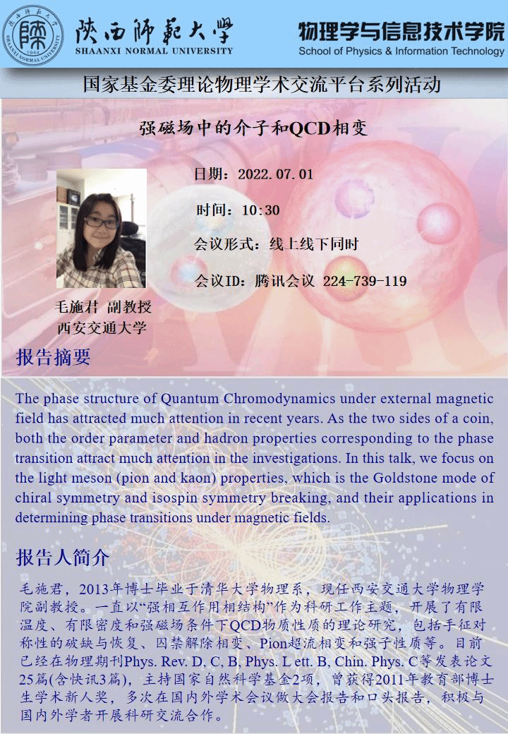 基金委理论物理平台系列活动:强磁场中的介子和QCD相变