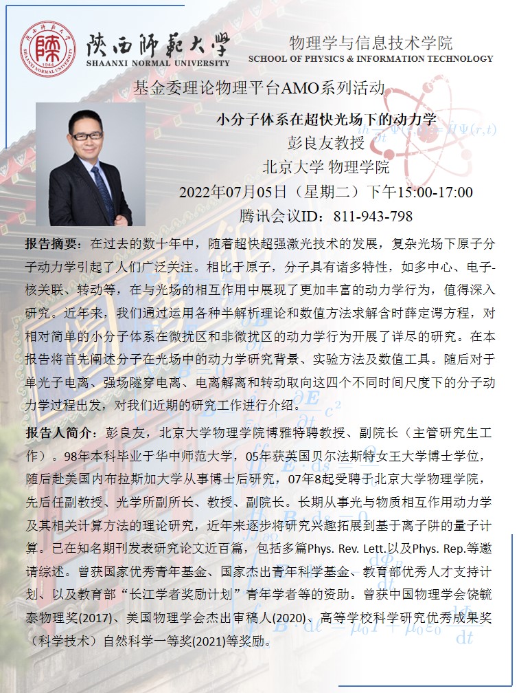 基金委理论物理平台AMO系列活动:小分子体系在超快光场下的动力学