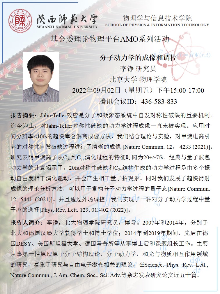 基金委理论物理平台AMO系列活动:分子动力学的成像和调控