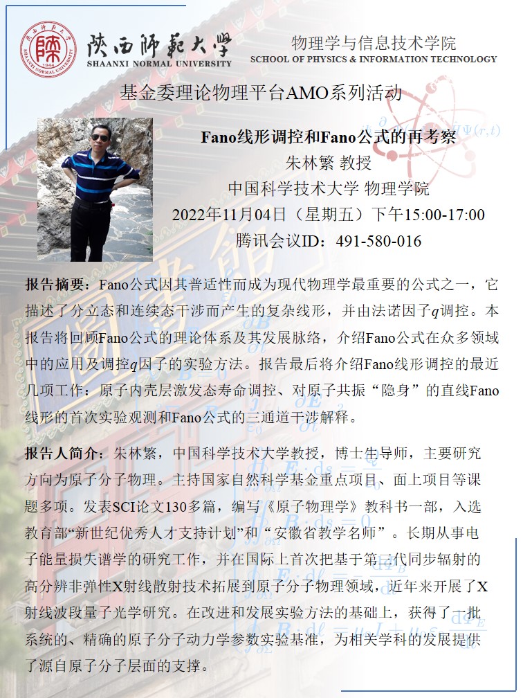 基金委理论物理平台AMO系列活动:Fano线形调控和Fano公式的再考察