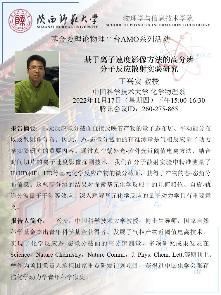 基金委理论物理平台AMO系列活动:基于离子速度影像方法的高分辨分子反应散射实验研究